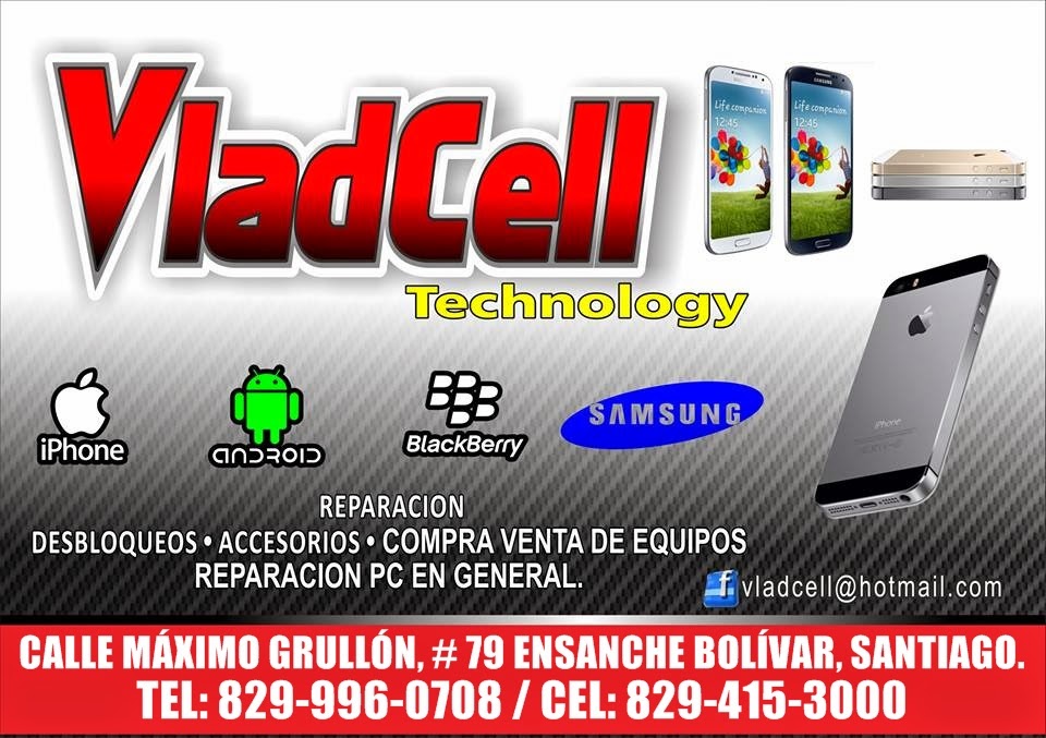 HOY QUEREMOS DAR LA FORMAL BIENVENIDA COMO NUEVO PATROCINADOR DE WWW.BOLIVARPOWER.COM A LA TIENDA DE CELULARES VLADCELL TECHNOLOGY, EL LUGAR CON LO MEJOR EN REPARACIÓN, DESBLOQUEOS, ACCESORIOS, COMPRA VENTA DE EQUIPOS Y REPARACIÓN DE PC EN GENERAL.. VISITANOS EN LA CALLE MÁXIMO GRULLÓN # 79 EN EL ENSANCHE BOLÍVAR, SANTIAGO.. PARA COMUNICARTE CON NOSOTROS SOLO TIENES QUE LLAMAR AL TEL: 829-996-0708 / CEL: 829-415-3000... BIENVENIDO A NUESTRA GRAN FAMILIA....