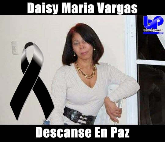 Ha fallecido en el sector Yaguita Del Ejido La Sra. Daisy Maria Vargas, quien sufrió un derrame cerebral y tenia mas de un mes recluida en cuidados intensivos... Nuestro más sentido pésame y condolencias a cada uno de sus familiares, por su triste partida.. Que Descanse en Paz...