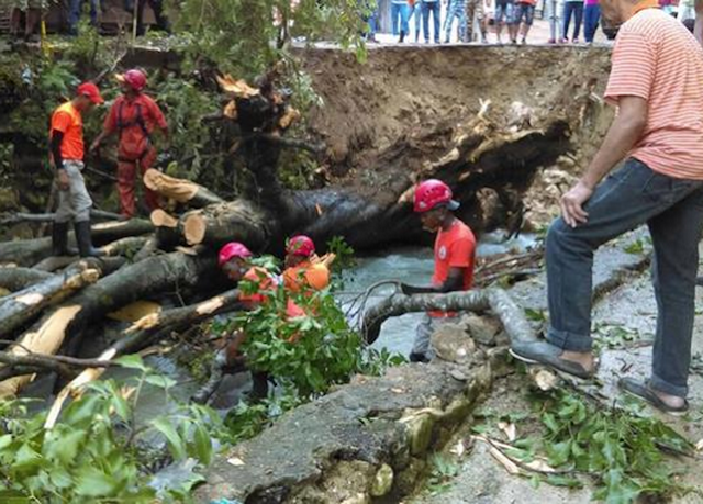 Las autoridades retiraron escombros y un árbol que calló dentro del cauce del río El Violón, en el sector Los Mameyes. Igualmente en la calle principal del barrio de San Marcos, donde también la lluvia derribó un árbol.