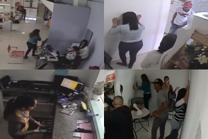 SAN FRANCISCO DE MACORIS.– Un asalto registrado en la empresa Cerimas, quedó captado por las cámaras de vigilancia de ese establecimiento ubicado en la Presidente Antonio Guzmán Fernández de esta ciudad. En el video se observa como los asaltantes, portando armas de fuego, amordazan a los empleados y dos clientes de la referida empresa, los despojan de sus pertenencias y cargan con el dinero de la venta de la caja registradora. Según las autoridades los delincuentes robaron la suma de cuatrocientos treinta y cinco mil pesos en efectivo (RD$ 435,000), y agredieron a los empleados de dicha compañía Ramon Paulino y Wellington Rosario.