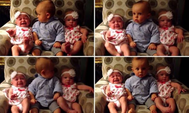 La confusión de un bebé al conocer a dos pequeñas gemelas se convierte en fenómeno viral. El pequeño London no puede dejar de mirar para sus dos costados al ser sentado por primera vez entre dos niñas idénticas vestidas de forma similar..Sigueme en instagram: @bolivarpower / www.bolivarpower.com..