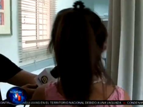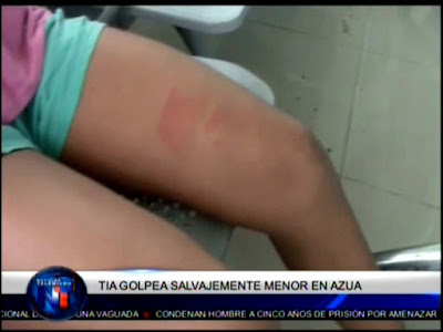 Azua.- En este vídeo vía Noticias Telemicro se pueden observar las huellas por golpes propinados por parte de una tía y su hijo a la menor. De acuerdo versiones, estos usaron una correa y una percha, la jovencita no pudo contener el llano de la tortura que vivió en la casa de su tía, según narra ella era golpeada con chancleta, con cucharón y hasta con palo.