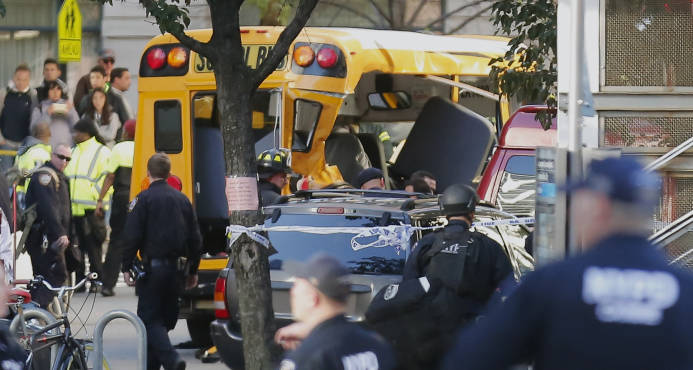 Al menos seis personas murieron hoy en el centro de Manhattan al arrollar una camioneta a varias personas, según fuentes oficiales y medios locales. El Departamento de Policía de Nueva York (NYPD) informó que, según datos provisionales, el conductor del vehículo arrolló a varias personas y salió de él después portando algo que puede ser una imitación de un arma de fuego. El sospechoso recibió disparos de los agentes policiales y quedó detenido, según la fuente oficial. Al parecer, según fuentes policiales citadas por la NBC, existen sospechas de que se trata de un atentado.