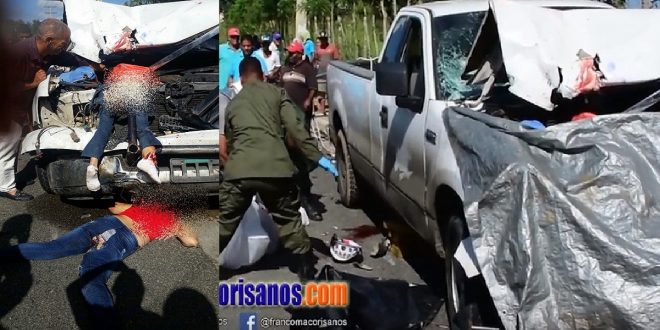 En el lugar hay varios heridos, los que no han sido especificados. Un ciudadano haitiano, testigo ocular del accidente, explicó que el conductor de la camioneta blanca, involucrada en el accidente, perdió el control al momento de cruzar por una curva y se estrelló contra una motocicleta conducida por el occiso. Versiones indican que las víctimas habrían salido momentos antes de la Dirección Regional de Pasaportes Nordeste, donde realizaron la renovación de ese documento. Al lugar se presentaron los familiares de las víctimas en estado de desesperación. Autoridades del sector transporte, así como miembros de la Policía Nacional acudieron al lugar.