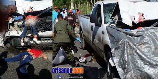 San Francisco De Macorís.- Al menos tres personas murieron, incluyendo dos hermanitos, en un accidente ocurrido en la sección Bijao-carretera San Francisco-Tenares. Las víctimas fueron identificadas como los hermanitos Claudina Jasmin, 13 años, y Joenyer Adolfo Tavárez Gómez, 10 años, respectivamente, ambos viajan en la camioneta con sus parientes a renovar sus pasaportes a la oficina de San Francisco de Macorís, oriundos de Salcedo,. El tercer occiso, iba en la motocicleta, David Antonio Monegro.