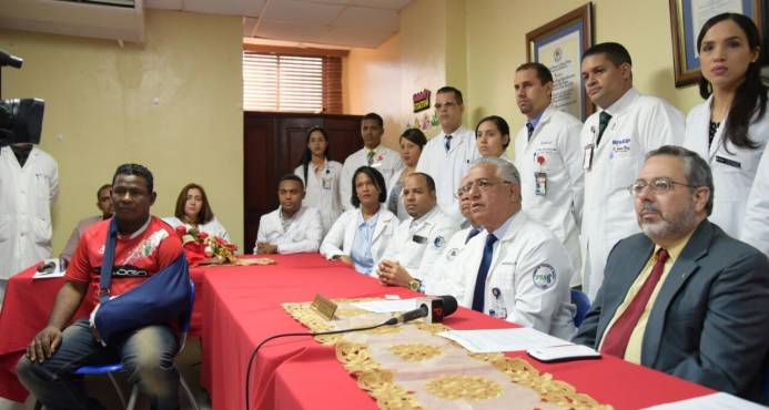 Se trata de William Trinidad, quien fue agredido por un delincuente. Fue dado de alta con la mano implantada y en franca recuperación el primer teniente Wiliam Trinidad, luego de habérsele reimplantado la mano izquierda que le fue amputada por una herida de arma blanca tipo machete. El hecho ocurrió en Hato Mayor el pasado 27 de noviembre en momentos en que disponía a detener a un alegado delincuente. El paciente fue intervenido quirúrgicamente por un equipo de especialistas del área de cirugía plástica del hospital Salvador B. Gautier, encabezado por el jefe de servicio, Severo Mercedes.
