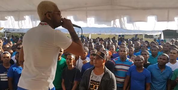 El exponente urbano “El Mayor” dio un consejo impactante a los reclusos en la cárcel de Najayo, donde ofreció un concierto para el disfrute de los internos. “Aquí hay muchos de barrios, yo era de la cañita, pero yo preferí coger un micrófono a cantar atrás de mi sueño y mi suerte si yo lo logré, también ustedes lo pueden lograr ” expresó El Mayor mientras los reos le observaban atentamente. Luego continuó diciendo “Después que tu sales puedes rehacer tu vida…. ustedes pueden trabajar honradamente y buscarse sus cuartos vacano ……… Hay que ponerse para lo suyo, después que uno salga de aquí buscarse el dinero honradamente, que nadie pueda hablar mal de usted, porque usted lo está haciendo bien” Dijo Enmanuel Reyes.